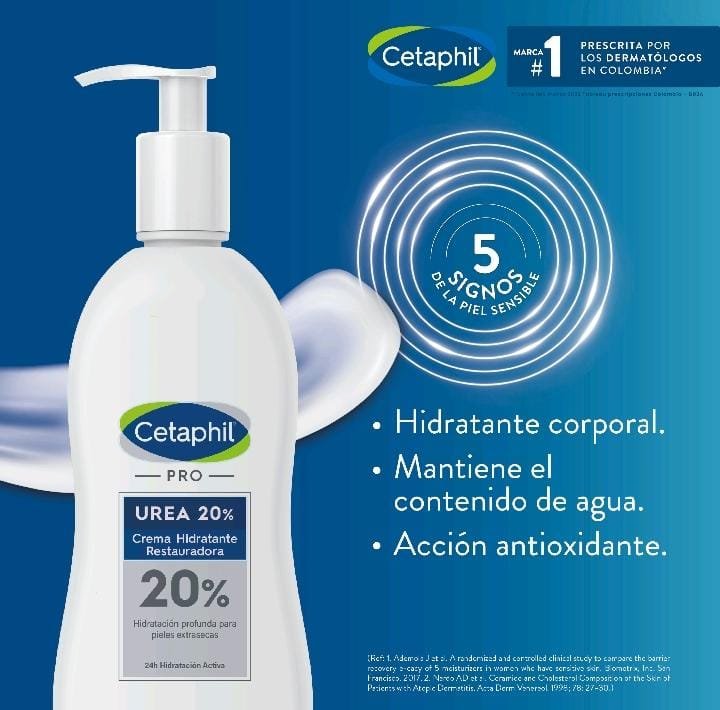 CETAPHIL PRO UREA 20% Crema Hidratante Restauradora x 296 ml 23/05/2022 - Por Luz Marina Añadir a la lista de deseos $ 113.400 CETAPHIL PRO UREA 20% Crema Hidratante Restauradora x 296 ml cantidad Añadir al carrito Categorías: Cuidado de la piel, Hidratación, Hidratante Etiquetas: Crema de rápida absorción ideal para proteger la barrera natural de la piel y retener la humedad dejando la piel hidratada y saludable, Proporciona humectación 24 horas continuas Galderma Productos relacionados SUNSTOP POLVO COMPACTO SPF 26 TRASLUCIDO $ 131.250 Añadir al carrito TOPICARE HIDRATANTE CORPORAL Leer más HYDRASKIN FACE $ 136.500 Añadir al carrito CETAPHIL CREMA HIDRATANTE 250 gm Leer más