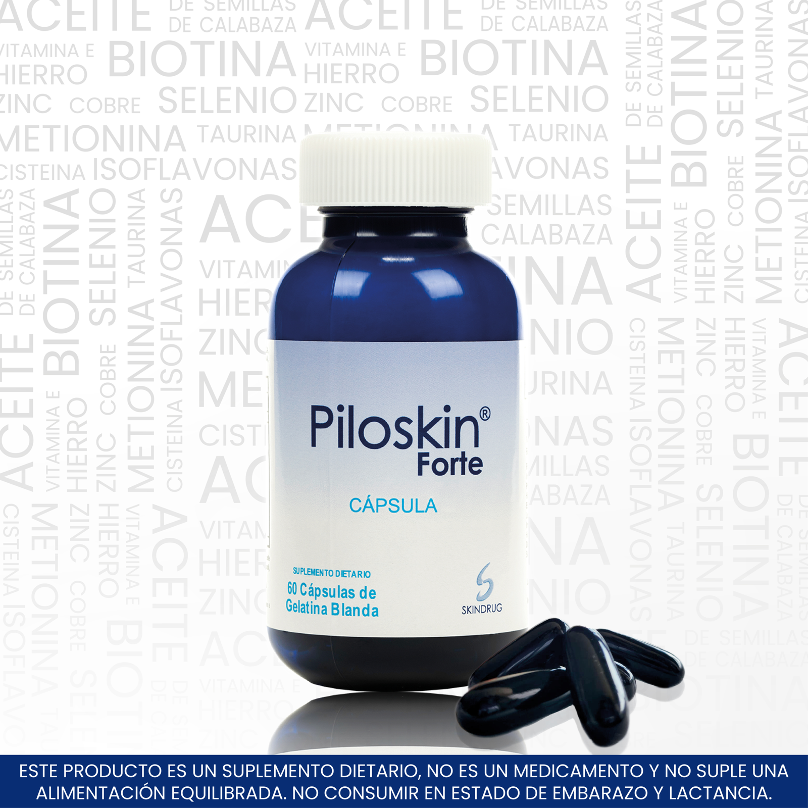 PILOSKIN BIOTINA FORTE 60 CAPSULAS 14/05/2017 - Por Vicente Linero Añadir a la lista de deseos $ 144.900 PILOSKIN BIOTINA FORTE 60 CAPSULAS cantidad Añadir al carrito SKU: SKI-PIL-06 Categorías: Caída de pelo, Cuidado Capilar, Pelo & Uñas, Tratamiento anti-caida Etiquetas: Contiene: Biotina Vitamina E Metionina y Zinc., Suplemento dietario Skindrug Productos relacionados ONYCLAIR PLUS $ 56.600 Añadir al carrito NIOGERMOX 8% (Ciclopirox) Leer más PILOSKIN TRATAMIENTO CAPILAR INTENSIVO PEINADO Y REPARACION 150 ml Leer más PILOSKIN BIOTINA CHAMPU ANTICAIDA USO DIARIO 280 ml Leer más